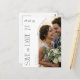 Meddela dina kommande bröllop med detta eleganta script-foto "save the date". Med en vacker typsnittsstil och utrymme för ditt favoritförlovningsfoto är denna design perfekt för en romantisk bröllopsfest. Den minimalistiska layouten låter ditt foto och detaljer framträda, vilket gör det till en tidlös souvenir. Denna design säkerställer att dina gäster är redo för din speciella dag. Dela din glada nyhet med stil och elegans med denna vackert designade "save the date".