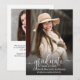 Elegant skript examen enkel fotofexamensmeddelande kort med skript teckensnitt full bleed porträttfoto på framsidan med namn och examensdetaljer. Baksidan har ett andra foto med ytterligare detaljer. Klicka på redigeringsknappen för att anpassa denna design.