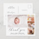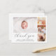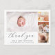 Det här tidlösa och stilrena födelsekortet och fototack-kort är perfekt för alla som vill tacka sina gäster för presenter, kärlek och stöd på deras baby shower och presentera sin nya familjemedlem. Den moderna och eleganta designen har en minimalistisk stil och har fyra anpassningsbara foton i klistermärket, enkel elegant typografi för din information och ett snyggt skrivsätt för en "tack"-rubrik. På baksidan finns ett anpassningsbart tackmeddelande med era namn. Använd knappen "anpassa" för att ersätta foton och redigera text.