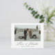 Elegantens minimalistiska design med "Kärlek & tack" i ett calligrafiskt skript på framsidan med en sfärande gräns som ramar in ditt speciella foto. Det finns ett budskap om personlig på baksidan till familj och vänner. Teckensnitt färg är anpassade.