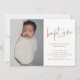 Denna moderna fotobarn-dop inbjudan har handskrivna kalligrafi skript dop konst som är flyttbar och du kan enkelt ändra färgen på, ett vertikalt foto och redigerbar text. Klicka på redigeringsknappen för att anpassa denna design.