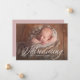 Ett elegant som "introducerar" ramar i introduktionen av nyfödd bebis på detta enkla och söta födelsetillkännagivande. Den här designen har ett foto på ett enda vågrät och kan fungera med en mängd olika bilder och innehåller även gott om utrymme för baby namn och statistik. Baksidan är ett ro rosa färg med en enkel punkt mönster.