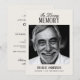 Hedra ett liv vällevt med detta eleganta, dubbelsidiga minneskort med en svart-vit porträttbild i en klassisk serif-typografi. Framsidans design inkluderar en slående "In Loving Memory"-rubrik med utrymme för att anpassa namnet och datumen för din avlidne. Baksidans layout är genomtänkt för att ge plats åt detaljer om begravningen eller firandet av livet, inklusive datum, tid, plats och RSVP-information. En tidlös krämfärgad bakgrund och minimalistisk typografi ger denna design en förfinad, återhållen stil som passar formella minnesstunder. Med sin vintage-inspirerade layout och monokroma färgpalett kompletterar detta kort en mängd olika tema för minnesstunder. Oavsett om det skickas med post till nära och kära eller digitalt, fungerar det som ett vackert