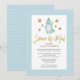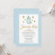 Fira att ditt värdefulla baby kommer att anlända med denna elegant, chic, söt och dröm "Shower by Mail Invation" med en blå dinosaurie som glatt viftar hejen under stjärnorna på framsidan. Rubriken har guld-folie som kalligrafi. Bakgrunden har den blå klistrapilen mönster i grönten. Alla texterna är i förväg ordnade så att du enkelt och snabbt kan anpassa dig med dina babyduschdetaljer.
