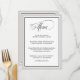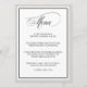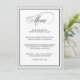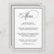 Ett snyggt menykort i elegant bröllop med calligraphy-skript-textaccenter med ett brett gräns i färg efter eget val. Här visas silver-grått gräns, du kan redigera färg till andra färg genom att välja "anpassa" och välja en bakgrund färg för att matcha bröllop färg. (Om du väljer att redigera färg måste du först redigera på båda sidor av kortet.) Redigera texten med menyinformationen.