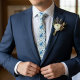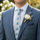 Unik slips med ett charmigt modernt franskt shabby chic-mönster. Den visar en botanisk blomsterdesign med vackert arrangerade pastellblå blommor och grå eukalyptusgröna blad, allt mot en vit bakgrund. Unik, söt, dekorativ, modern och trendig design för brudgummen, best man eller brudtärna på en bröllopsfest, professionell och sofistikerad affärsman eller examen.
