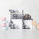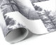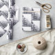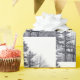 Gör dina presenter pappra i eleganten med ett svartvitt foto av snö-täckt träd i en halv droppe upprepat mönster. Treetingarna bildar en stark diagonal med det högsta träd som börjar i bildens övre lämnat hörn och det kortaste träd vid grund tredje delen av högerna kant. De två träd på den lämnat sidan är evergreens medan resten är lömskt lömskt träd; alla täcks av snö. Himlar ovanför dem är vitt. Perfekt till jul och andra helgdagar och tillfälle. Om du vill se fotot på Träd som täcks av Snö: Lodrät på andra objekt klickar du på länken "Rocklawn Arts" nedan. Digitalt, svart och vitt foto. Copyright ©Claire E. Skinner. Alla rättigheter förbehållna.