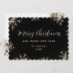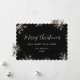 Elegant svart högtidskort med en charmig ram av fallande snö och snöflingor mot en svart bakgrund på framsidan och en akvarellmålning av julstjärna, barrträdsgrenar, järnek och röda bär på baksidan. Ett elegant skrivstil används för att ge detta gratulationskort en mer festlig look. Anpassa enkelt detta icke-fotobaserade högtidskort online.