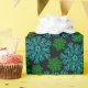En elegant vinter snöflummet mönster i rikens skuggor av grönt och blått över en svart bakgrund gör en häpnadsväckande klackklappning. Perfekt för julsäsongen och under vintermånaderna.