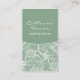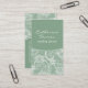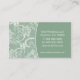 Utformning av Affärskortet Snöre i söt och klassy Elegant i sage grönt med en böjd bakgrund i blommigt snöre mönster. Det här vackra affärskortet skulle vara en perfekt som passar för en mängd olika glamorösa affärstyper. Enkel att anpassa, lägg bara till din affärsinformation i fälten som tillhandahålls. Klicka på knappen "Anpassa" för att hitta ytterligare anpassningsalternativ.