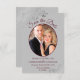 De här vackra korten är ett underbart sätt att låta dina vänner och familj veta att spara datumet för ditt kommande bröllop. De har en elegant- och grått-design med ditt foto i en ovalformad ram omgiven av silver grått snöre och finare-skriptbokstäver med namn, bröllop datum och plats. På baksidan finns en söt bild med plats för en anteckning som kan innehålla en webbplats där dina gäster kan gå och läsa mer.