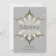 stil-julhälsningskort i snyggt, med ett glitter tittar metall som snöflingor, i mitten. Bronze tittar glitter grafisk text som går genom snöflammans mitten, lyder Merry. Anpassa texten, grund på kortet till kostym som ditt företag behöver.