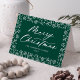 Elegant helgdag kort med "God jul" på framsidan i ett fet vitt kalligrafiskt skript med vit snöflinga och gräs gren gräns med grönt bakgrund. Anpassa framsidan på kortet för helgdag som inte är fotokort genom att lägga till ditt namn och året. Insidan av kortet ger utrymme för ditt personliga meddelande som skrivs eller skrivs för hand. Baksidan av det moderna helgdag-kortet har en vacker snöflinga mönster.