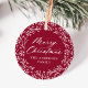Lägg till en personlig i dina helgdag med dessa festliga Juletiketter. Presentens märkre visning "God jul" i ett vitt kalligrafiskt skript omringat av en helgdag andedräkt av snöflingor och gräs grenar på en kranberrytbakgrund. Anpassa märkrna för snöflingor med ditt namn eller din anpassningsbar.
