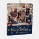 Modern Elegant Script Snowflake Navy och Guld Photo God jul Script Helgdag Ceramic Ornament. Innehåller en) text för fotomallen "God jul". Texten "God jul" hälsning är skriven i ett vackert handskript med visuella typsnitt och runt guld snöflingor på marinblå färg-bakgrund. Den här keramiska prydnadsgåvan till din familj och dina vänner i julens Julhelg.