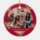 Modern Elegant Script Snowflake Red och Guld Photo God jul Script Helgdag Ceramic Ornament. Med (en) fotomall med ett cirkelfamiljfoto, runt guld snöflingor på röd färg-bakgrund. Den här keramiska prydnadsgåvan till din familj och dina vänner i julens Julhelg.