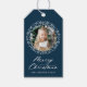 Elegant Snowflake Wandean Navy Helgdag Photo Presentetikett