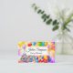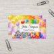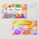 Elegantens Affärskort har en färgstark bakgrund med färgstarka ballonger, med text i vit banderoll ..Julia Simpson ... På baksidan är samma färgade design med text... Julia Simpson Street Adress...