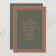 Elegant och snyggt, varm och romantisk terakotta/bränd orange och mörk/oliv grönt inbjudningskort för möhippan för höst- eller vinterbröllop. Kontakta oss om du behöver hjälp med att anpassa eller matcha produkter.