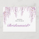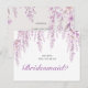 This elegant bridesmaid proposal postcard features a delicate, whimsical design perfect for a soft, romantic wedding theme. The top border is adorned with cascading watercolor wisteria and floral vines in shades of soft blush and lavender, creating a graceful, draped effect.