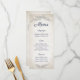 Ett elegant bröllop-menykort designat med delikat löv och svart skripttext. Snyggt och modern design, med mjuka accenter. Om du vill anpassa dig infogar du bara dina uppgifter i vår enkla mall och ersätter exempeltexten: Appetizer Selections, Entre Selections och Dessert Selections, med dina menyalternativ längst fram och Namnen Bride och Groom's First i bakgrunden. Se till att du ser hela Eleganten Mjuk Löv Skriptsamling Bröllop.