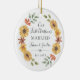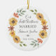 Elegant julprydnad med en bild av solblommornas krans. Personlig med texten "Vår första jul gifte sig", parets namn och det fastställda året. Dubblans utformning.