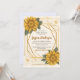 Meddela ankomsten av din lilla solsken med vår eleganta solros baby shower inbjudan. Den fantastiska guldramen och den handritade solrosdesignen ger en vacker och sofistikerad touch. Anpassa detaljerna för att göra det till ditt eget och inbjuda dina nära och kära att dela denna speciella stund.