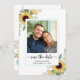 Framsidan har en vacker solros och blommigt med ditt foto och din personlig med namn och bröllop. Kortets baksida har fin solros och blommigt med namn och kommande bröllop-detaljer. Om du vill anpassa ytterligare klickar du på "anpassa" och sedan på "Redigera med Design Verktyg" för att ändra färg, teckensnitt osv. Design ©Rosalind Moore, Cherry Lane Designs.