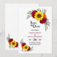 Uppdatera dina vänner och nära vänner med den här eleganten solrosor och burgundisk ro blommigt bröllop spara-till-datum-kort för att se till att alla har fått tillräckligt med tid för att göra arrangemang för att närvara på din speciella dag.