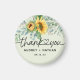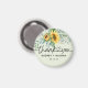 Elegant och chic akvarell solros och eukalyptus grönska blomster magnet med tack med hjärta som förbinder namn och datum. Perfekt idé för bröllopsfavoriter eller presenter till gäster för alla tillfällen.