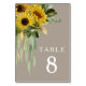 Elegant solros eukalyptus taupe bröllop bordsnummer