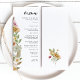 Elegant Solrosmeny. Den här moderna bröllop-menyn har en fantastisk, handmålad rosa och dammiga blå blommor, vackra solblommor av gult och en sage greenery arrangerad som en underbar andedräkt som är perfekt för dem som har den hora boho/bohemian elegans i kärlek. Sök efter matchande objekt i Modern Solros Bröllop-samlingen.