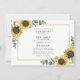 Inbjudan till blommigt Geometric Eucalyptus Solrosasbröllop. Skapa ett modernt inbjudningskort för Solros-Blommigten med den här söta mallen med vacker rustik blommigt bouquet, geometrisk guld-effekt ram, med modern enkel typografi. TIP: Matchande bröllop-svit som OSA, bröllopsprogram, banderoller, tapetik, presentkort, skyltar och andra bröllop-kök och märkre-godis finns i samlingen nedan med denna design.