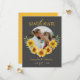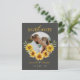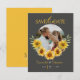 Denna eleganta solros-inspirerade "Spara datum"-kort har en modern grå bakgrund med ett stilrent litet valvfoto på framsidan, vilket ger en modern och sofistikerad look. Baksidan visar en varm gul solrosfärg som perfekt kompletterar designen på bröllopsinbjudan. Med sin chic typografi och rustika blomsteraccent är detta kort perfekt för par som planerar ett solros- eller rustikt tema bröllop. Anpassa det med dina detaljer för att göra det unikt!