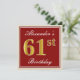 Denna enkla och elegant födelsedagsfestinbjudandesign presenterar en personligmeddelandenågot liknande "Alexanders 61st födelsedag" (med "61st" ha en look för faux-/efterföljdguld-något liknande färgläggning) inom röd-färgad kvadrerar område som presenterar en enkel gräns, skisserar. Namn är i en elegant vit-färgad skriva-något liknande text och kan vara personligen. Den tillbaka särdraganpassadeinbjudan specificerar. En födelsedagsfest inbjudannågot liknande detta kunde kanske användas, när du inviterade folk till en födelsedagsfest som rymdes för någon som firar deras sextio första födelsedag. [~Z0000227]