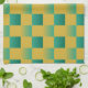 Elegant som kontrolleras mönster i grönt och guld kökshandduk