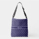 Elegant Sömlös spiral vektor mönster på marinblå korsblock. Chic svart och vitt Tote bags. Text kan vara personlig.