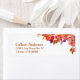 De här returetiketterna har en vacker vattenfärgsbild med ljusa, färgstarka blommor i korallets rosa, violett, guld och röd toner.