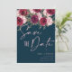 Elegant Söt Burgundy Peach Blue Blommigt Bröllop spara datum . Elegant vackra Blommigt Bröllop spara datum-kort med söt burgig bakgrund för blommigt för rosa och text i söt-teckensnitt. Dessa sparar datumkorten är perfekt för att meddela din stora dag. Skicka ut dessa snyggt-meddelandekort till familj och vänner. Anpassa korten genom att ändra namn på briden och trippen och bröllop-datumet. Om du vill ha fler anpassningar kan du kontakta mig på mypaperlove2021@gmail.com