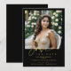 The modern design captures the essence of a young woman entering adulthood, with an intense black background and golden accents creating a chic and stylish look that will impress your family and friends. Personalize the card by uploading your favorite photo, adding your name, the date of your Quinceañera, and any other special details to make it a cherished memory.