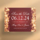 Bröllop "Spara Datum"-design med romantiska Gnistrande Ljus Guld Röda Jul- och anpassade namn och datumtext. Imponera på familj och vänner med denna stilrena och moderna design. Helt anpassningsbar! Lätt att använda och lätt att anpassa