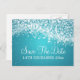 Elegant Spara Datum Gnistrande Våg Blå Meddelande Vykort