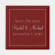 En magnet som är den perfekt som sparar datumet för bröllop, det här objektet har en röd bakgrund med grått text, anpassar ditt i dag!