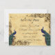 Spara datum-kort med vackra turkosa och lila påfåglar ramade med vintage-virvlar i victoriansk stil.