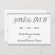 Den här eleganten och den senaste vykortsdesignen för spara-datum innehåller meddelandet "SPARA DATE" på framsidan, tillsammans med redigerbart namn, datum och händelseinformation. Sådana vykort skulle kunna användas för att ge ge ett huvud till potentiella gäster från ett kommande bröllop firande eller något annat evenemang.