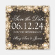 Elegant bröllop "Spara datum"-design med mousserande Ljus Guld, egna namn och datumtext.