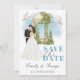 Meddela din speciella dag med vår Elegant Spara datumkortet. Med en romantisk illustration av Bride and Groom på en bildstation med en charmig gazebo med blommor och två snygga duvor, anger den här designen perfektens ton för bröllop. Den omvända sidan visar en lyxig bakgrund i guld med extra duvor, som symboliserar kärlek och enighet. Anpassa med din namn och bröllop-dejt för att göra det unikt för dig. Perfekt till par för att hitta ett sofistikerat och minnesvärt sätt att sina stora nyheter