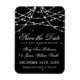 Elegant bröllop "Spara datum"-design med mousserande strängssvart, anpassade namn och datumtext.