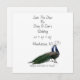 Det här bröllop spara datum-kortet har en enkel utformning och elegant. Perfekt för att du tillkännager din speciella dag för familj och vänner. Det finns ett par fredsbälten på ett tak. Deras fjädrars pulserande färg står mot den muterade bakgrunden.