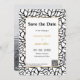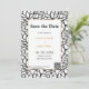 Kortet Save the Date Black Foliage Disline Aztec Guld accents Investigation Card (spara datum för svartlistning) annonserar din bröllop-händelse i stil. Mot en pristinvit bakgrund skapar intrikata bladkonturer i svart en fängslande kontrast som exuderar tidlös sofistikering. Den vita texten fält, som är perfekt inramad i tunna Aztec guld färg, förfinar formgivningen, medan briden och brudgummen i namn, i traditionellt kursivt serif-typsnitt, skiner i Aztec guld färg för en personlig. På baksidan finns en svart och vit anpassningsbar av paret med överliggande namn. Anpassa text, bild och QR-kod så att den blir unik för dig. Om du vill ha mer inspiration från bröllop kan du gå till www.KBMD3signs.com. För förfrågningar eller hjälp från anpassad design kan du kontakta oss på info@KBMD3signs.com.